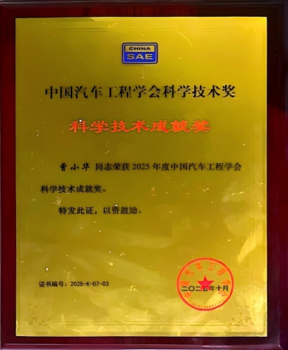 10月22日,第三十二届中国汽车工程学会年会在重庆举行。民建吉林大学基层委员会委员、汽车底盘集成与仿生全国重点实验室曾小华教授,从全国主机厂、零部件企业及高校竞争者中脱颖而出,成为2025年度“科学技术成就奖”(每年仅4人)全国高校唯一获奖者。