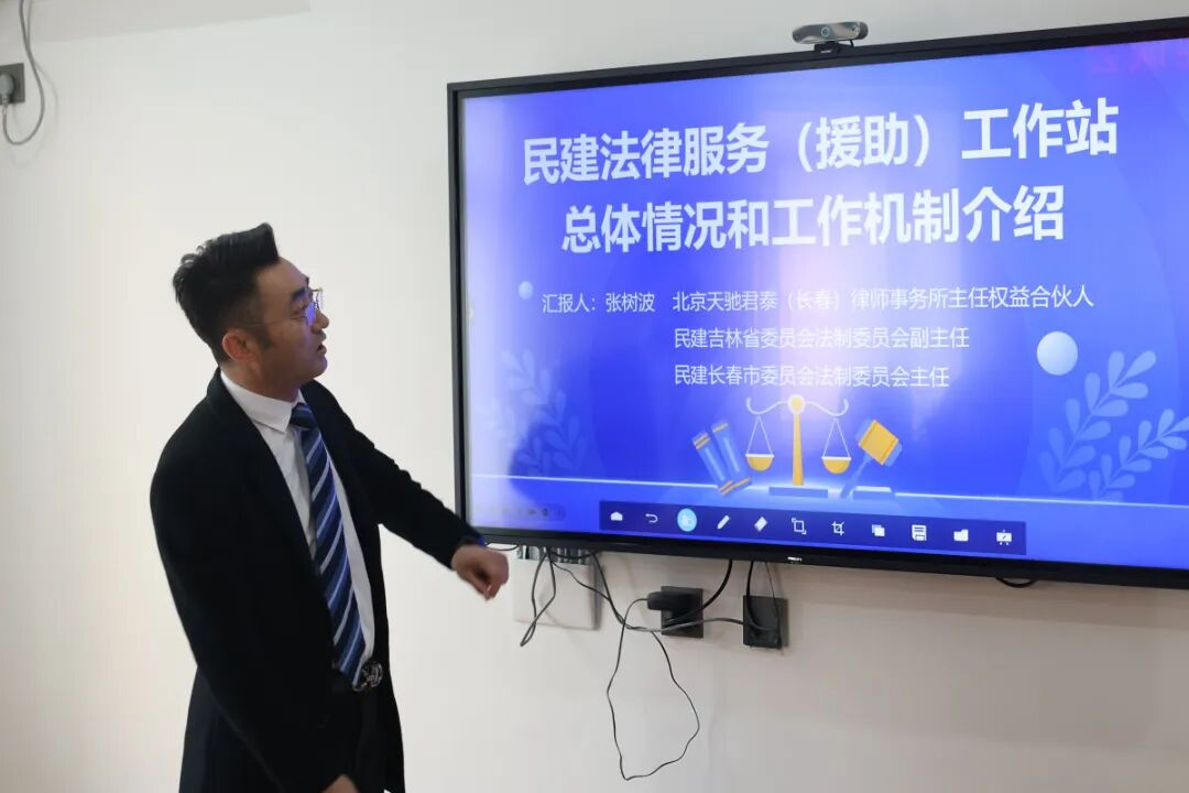 座谈会上,民建吉林省委员会法制委员会副主任、民建长春市委员会法制委员会主任、北京天驰君泰(长春)律师事务所主任权益合伙人张树波详细介绍工作站建设背景、组织架构、运行机制、服务内容。